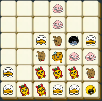 같은 모양의 카카오프렌즈 블록이 2×2 형태로 4개가 붙어있을 경우 사라지면서 점수를 얻는 게임이다.